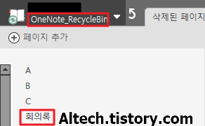 그럼 아래와 같이 "삭제된 페이지" 탭에 "회의록" 페이지가 추가된것을 확인할 수 있습니다.